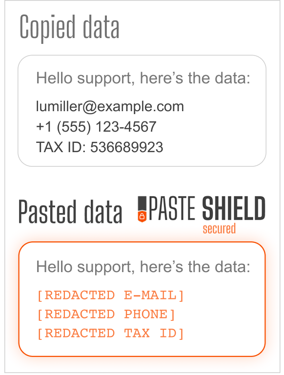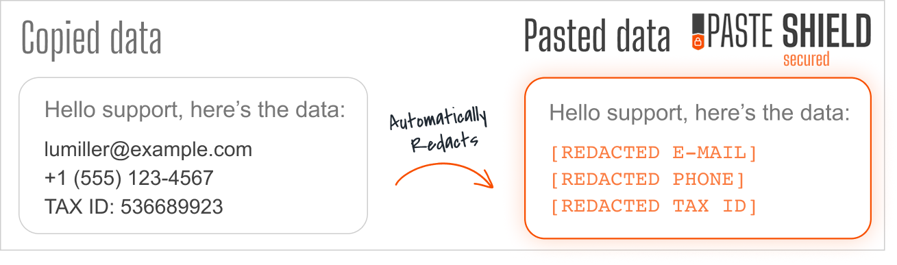 It only takes one paste to trigger a serious data breach. Paste Shield guards your clipboard and prevents costly mistakes. Instantly and automatically.